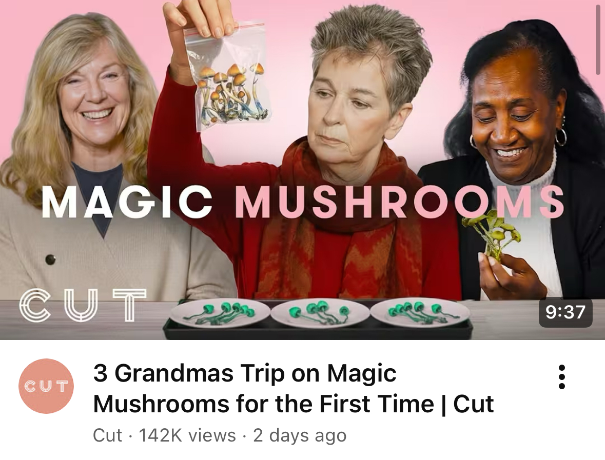 In addition to my private practice, I served as the lead facilitator and coordination support for the CUT.com viral film “Grandmas Try Magic Mushrooms for the First Time,” helping create a safe, supportive, and legally-regulated environment for participants exploring psilocybin.